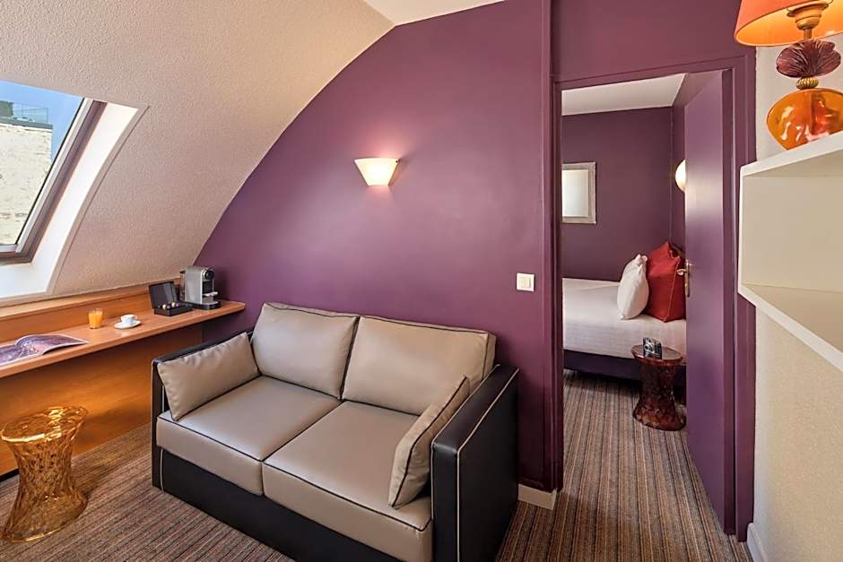 Offering a view of Paris rooftops, this attic room features 1 bedroom and a living room with a sofa bed. It includes 2 bathrooms, 2 TVs and air conditioning.